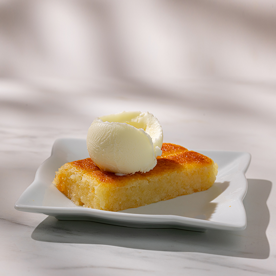 Tuzsuz taze peynirden el emeği ile üretilen ve ardından fırınlanan yöresel tatlı; vanilyalı dondurma eşliğinde